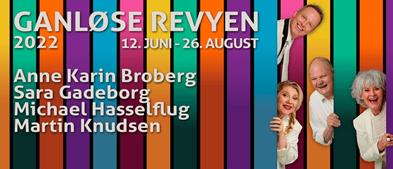 Endnu en gang inviterer vi til Danmarks hyggeligst sommerrevy på Ganløse Kro. I år medvirker Anne Karin Broberg, Sara Gadborg, Michael Hasselflug og Martin Knudsen Instruktør: Michel Castenholt. Prisen er inkl. menu.